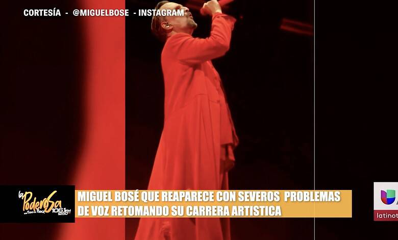El cantante Miguel Bosé reaparece en el escenario enfrentando severos problemas de voz, retomando su carrera artística.