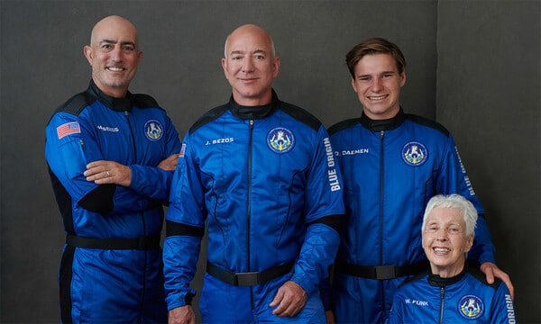 El multimillonario empresario estadounidense Jeff Bezos, fundador de Amazon, y sus tres compañeros de tripulación emprendieron hoy martes una de las aventuras espaciales más esperadas de los últimos meses a bordo de la nave espacial reutilizable New Shepard de Blue Origin.