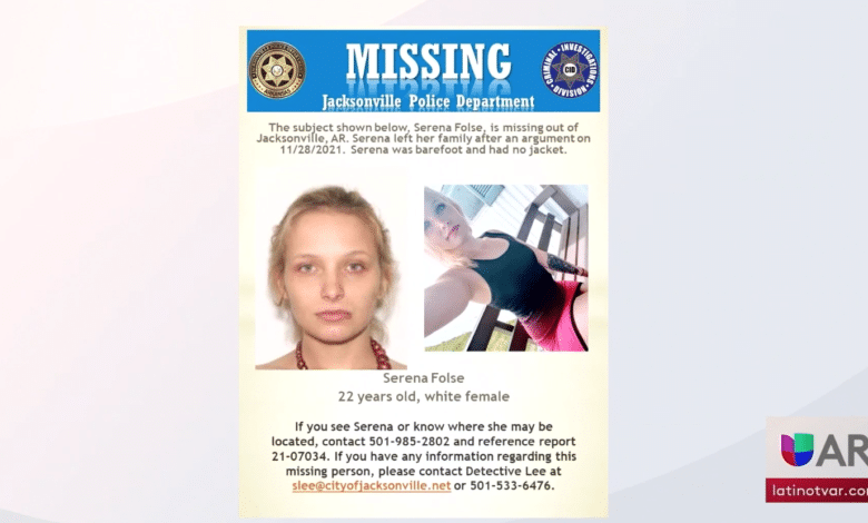 La policía dijo que Serena Folse fue vista por última vez el 28 de noviembre. Según los informes, dejó a su familia después de una discusión sin chaqueta ni zapatos. Si sabe dónde está Folse, llame al detective lee al 501-533-6476.