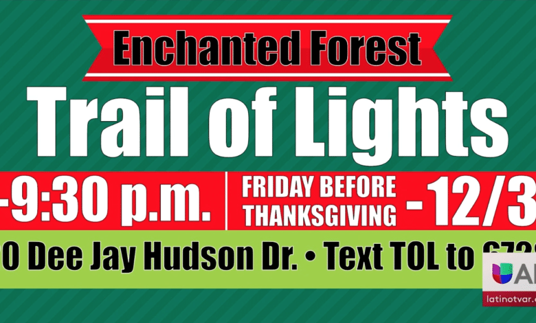 El Sherwood’s Enchanted Forest Trail of Lights es un sendero para autos con la entrada ubicada en el Sherwood Sports Complex, localizada en el 420 Dee Jay Hudson Drive.